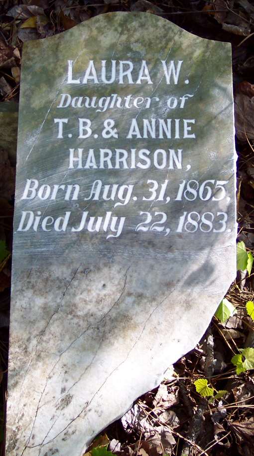 | Harrison, Laura W. | Aug. 31, 1865 | July 22, 1883 | Daughter of T. B. & Annie Harrison - [see above note] |