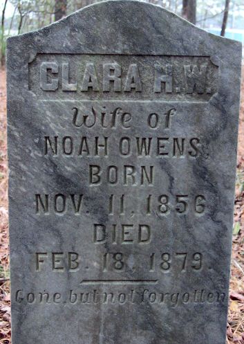 | Owens, Clara H. W. | Nov. 11, 1856 | Feb. 18, 1879 | Wife of Noah Owens |