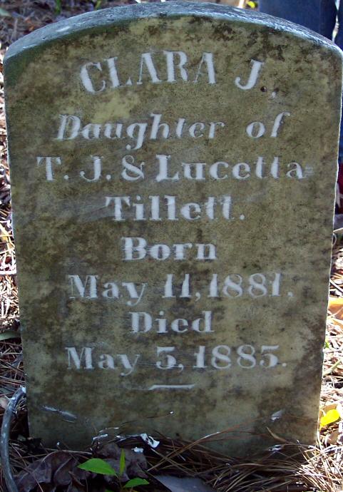 | Tillett, Clara J. | May 11, 1881 | May 5, 1885 | Daughter of T. J. & Lucetta Tillett |