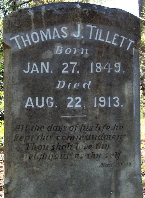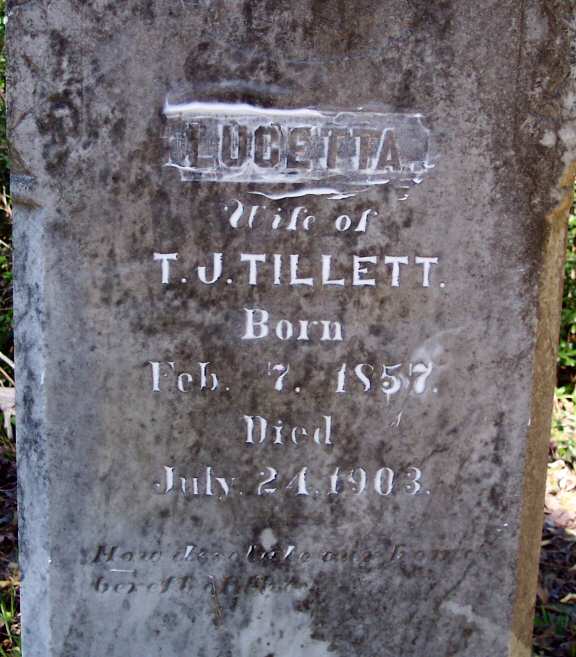 | Tillett, Lucetta | Feb. 7, 1857 | July 24, 1903 | Wife of T. J. Tillett [1989 photo] |