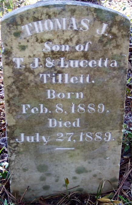 | Tillett, Thomas J. | Feb. 8, 1889 | July 27, 1889 | Son of T. J. & Lucetta Tillett |