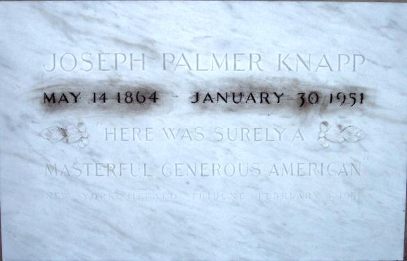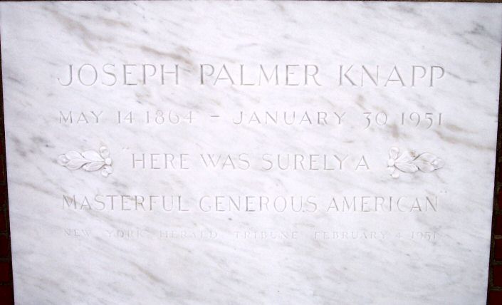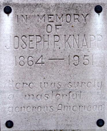 | Photo 6 | Center Entrance - Left Side [In Memory of Joseph P. Knapp 1864 - 1951 Here was surely a masterful generous American] |