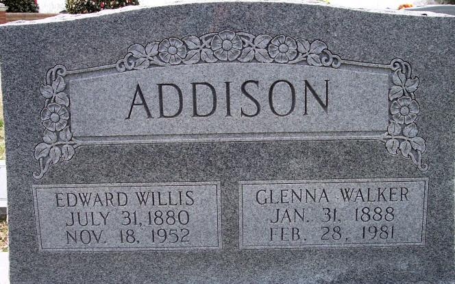 | Addison, Glenna Walker | Jan. 31, 1888 | Feb. 28, 1981 | [Double with: Edward Willis Addison] |