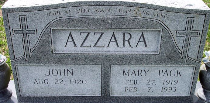 | Azzara, Mary Pack | Feb. 27, 1919 | Feb. 7, 1993 | [Double with: John Azzara] |
