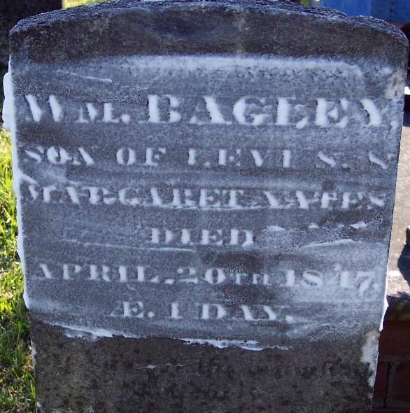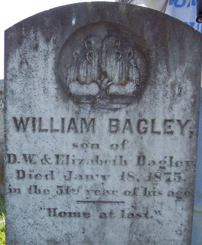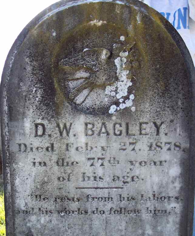 | Bagley, William | [Feb. 12, 1824] | Jan'y 18, 1875 | Son of D.W. & Elizabeth Bagley - In the 51st year of his age |