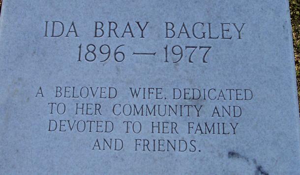 | Bagley, Eva Berryman Dudley | [Sept. 5] 1869 | [Sept. 27] 1926 | Wife of Raleigh O. Bagley [Death Certificate] |