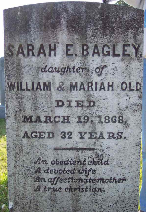 | Bagley, Sarah E. | [c1836] | Mar. 19, 1868 | Aged 32 Years - Daughter of William & Mariah Old |