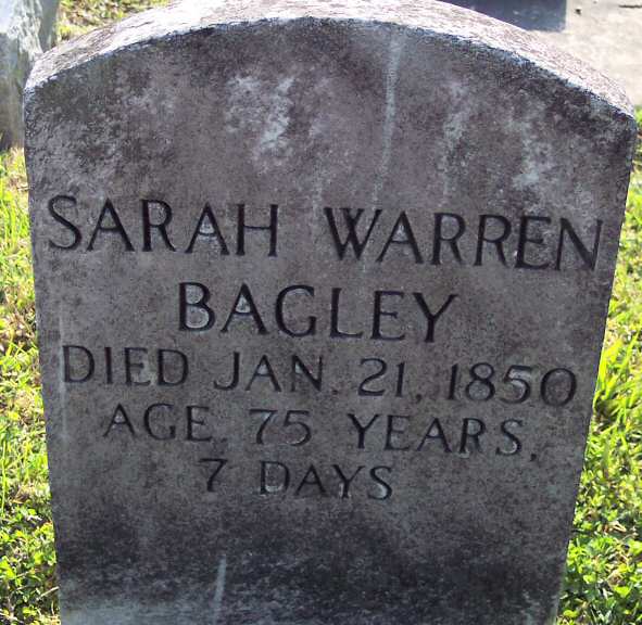 | Bagley, Sarah Warren | [c1775] | Jan. 21, 1850 | Age 75 years 7 days |