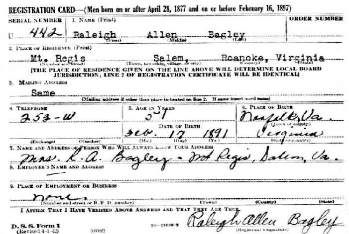 | Bagley, Raleigh Old | [June 8] 1863 | [Dec. 25] 1938 | [Death Certificate] |