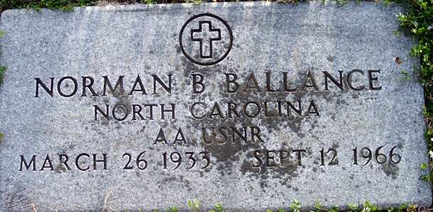 | Ballance, Norman B. | Mar. 26, 1933 | Sep. 12, 1966 | Husband - [Military Marker] - North Carolina AA USNR |