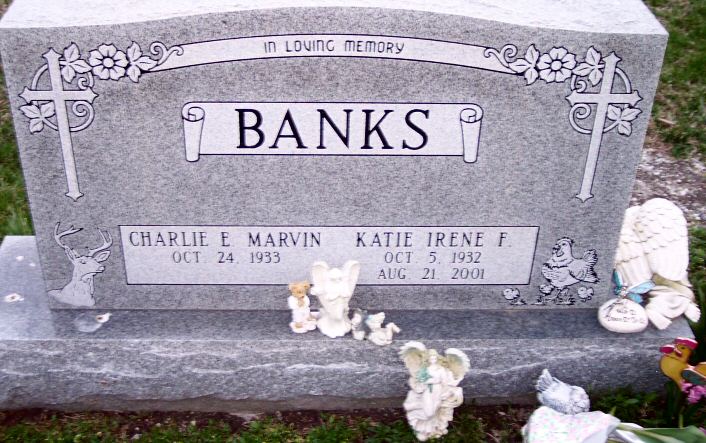 | Banks, Katie Irene F. | Oct. 5, 1932 | Aug. 21, 2001 | [Double with: Charlie E. Marvin Banks] |