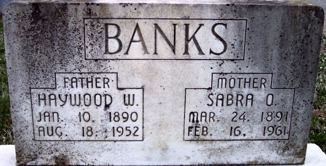 | Banks, Haywood W. | Jan. 10, 1890 | Aug. 18, 1952 | [Double with: Sabra O. Banks] - Father |