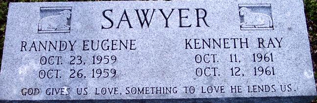 | Werner, John Ross | Nov. 12, 1995 | Beloved Son and Brother - [child's tombstone only has one date] | |