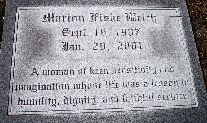 | Welch, Marion Fiske | Sep. 16, 1907 | Jan. 28, 2001 | [see obituary] |
