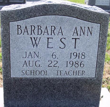 | West, Barbara Ann | Jan. 6, 1918 | Aug. 22, 1986 | School Teacher |