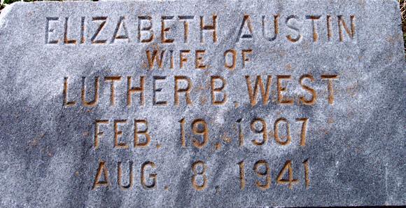 | West, Elizabeth Austin | Feb. 19, 1907 | Aug. 8, 1941 | Wife of Luther B. West |