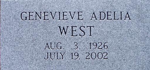 | West, Genevieve Adelia | Aug. 3, 1926 | July 19, 2002 | [see obituary] |