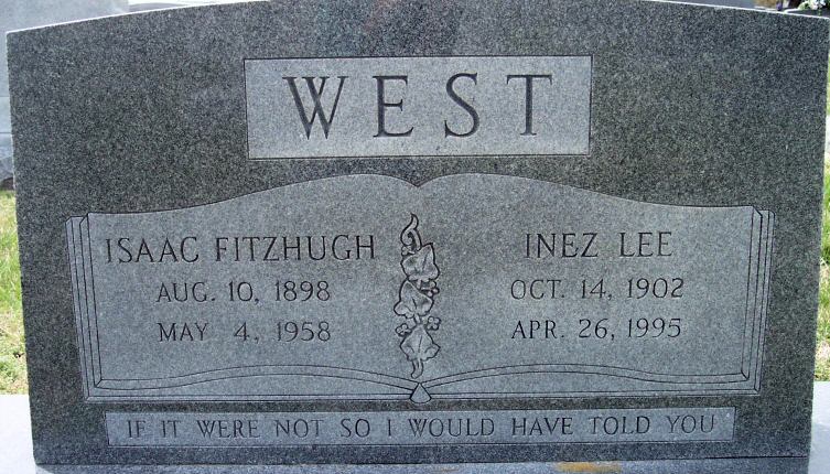 | West, Inez Lee | Oct. 14, 1902 | Apr. 26, 1995 | [Double with: Isaac Fitzhugh West] |