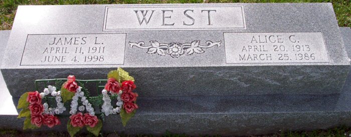 | West, James L. | Apr. 11, 1911 | June 4, 1998 | [Double with: Alice C. West] |