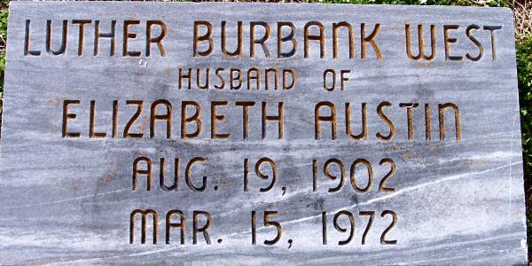 | West, Luther Burbank | Aug. 19, 1902 | Mar. 15, 1972 | Husband of Elizabeth Austin |