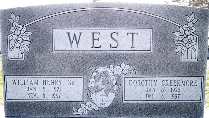 | West, William Henry Sr. | Jan. 5, 1921 | Nov. 8, 1997 | [Double with: Dorothy Creekmore West] - Married: Sep. 20, 1941 |