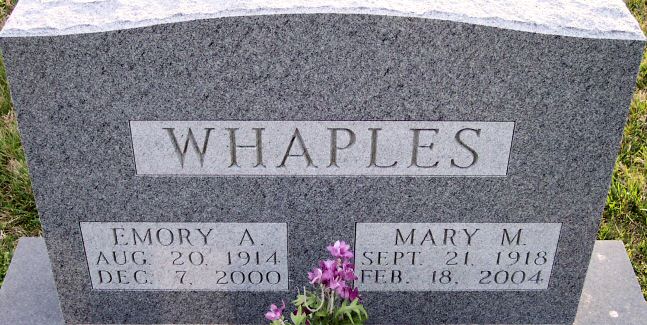 | Whaples, Emory A. | Aug. 20, 1914 | Dec. 7, 2000 | [Double with: Mary M. Whaples] |