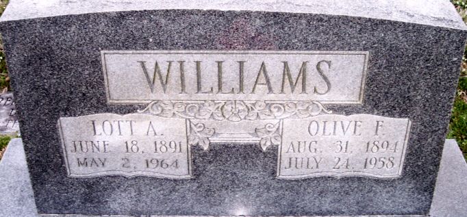 | Williams, Lott A. | June 18, 1891 | May 2, 1964 | [Double with: Olive F. Williams] - Father |