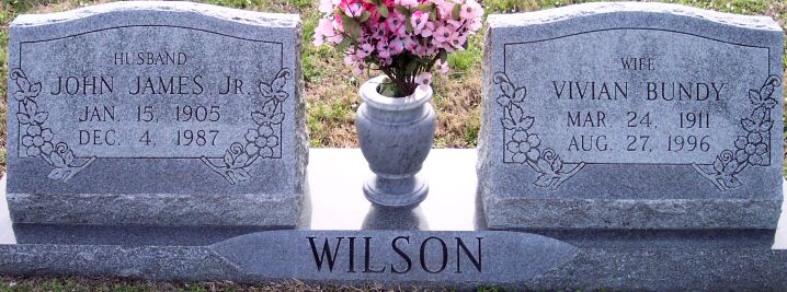 | Wilson, Vivian Bundy | Mar. 24, 1911 | Aug. 27, 1996 | [Double with: John James Wilson Jr.] - Wife |