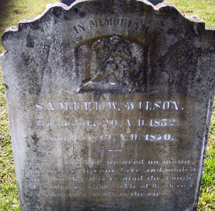 | Wilson, Sarah Jane | Oct. 22, 1843 | Mar. 26, 1880 | Wife of H. J. Wilson |