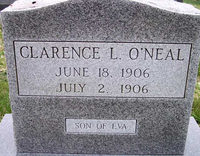 | O'Neal, Clarence L. | June 18, 1906 | July 2, 1906 | Son of Eva |