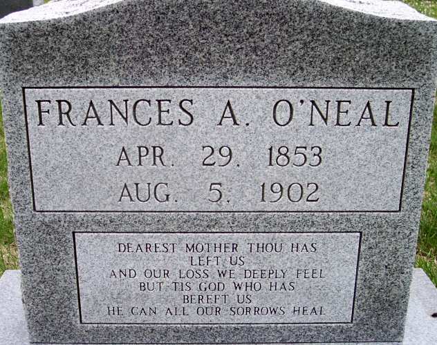 | O'Neal, Frances A. | Apr. 29, 1853 | Aug. 5, 1902 | |