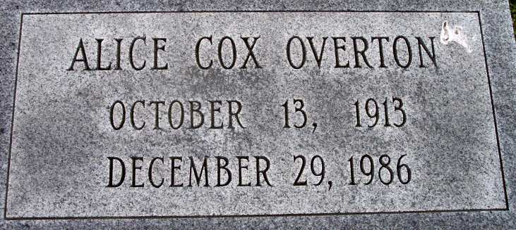Alice Cox Overton] [Tombstone close-up] |