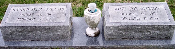 | Overton, Alice Cox | October 13, 1913 | December 29, 1986 | [Double: