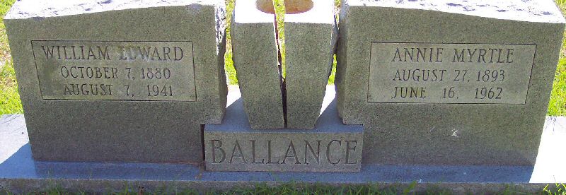 | Ballance, Annie Myrtle | Aug. 27, 1893 | June 16, 1962 | [Double with: William Edward Ballance] |