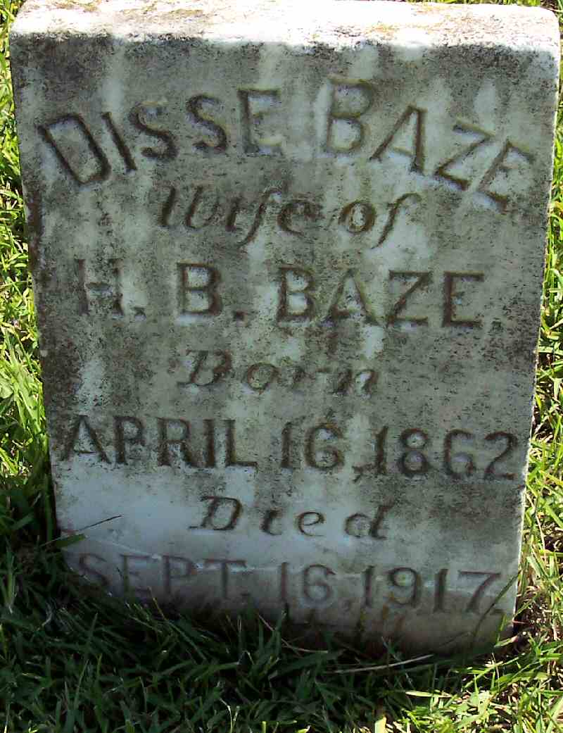 | Baze, Disse | Apr. 16, 1862 | Sep. 16, 1917 | Wife of H. B. Baze |