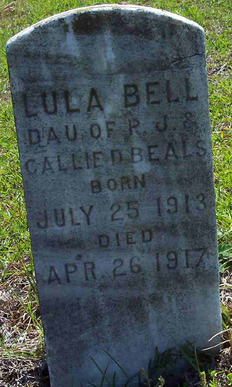 | Beals, Lula Bell | July 25, 1913 | Apr. 26, 1917 | Dau of P.J. & Callie D. Beals |