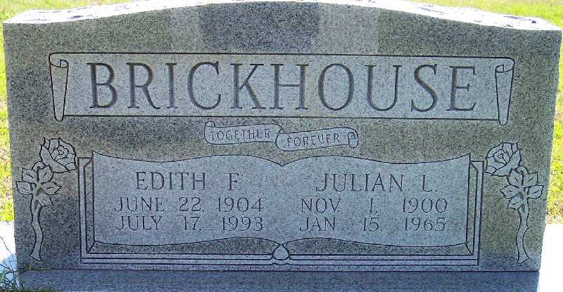 | Brickhouse, Edith F. | June 22, 1904 | July 17, 1993 | [Double with: Julian L. Brickhouse] [see obituary] |