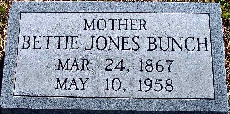 | Bunch, Bettie Jones | Mar. 24, 1867 | May 10, 1958 | Mother |