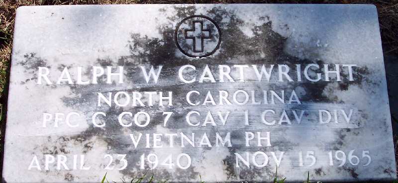 | Cartwright, Ralph W. | Apr. 23, 1940 | Nov. 15, 1965 | North Carolina Pfc C Co 7 Cav 1 Cav Div Viet Nam PH |