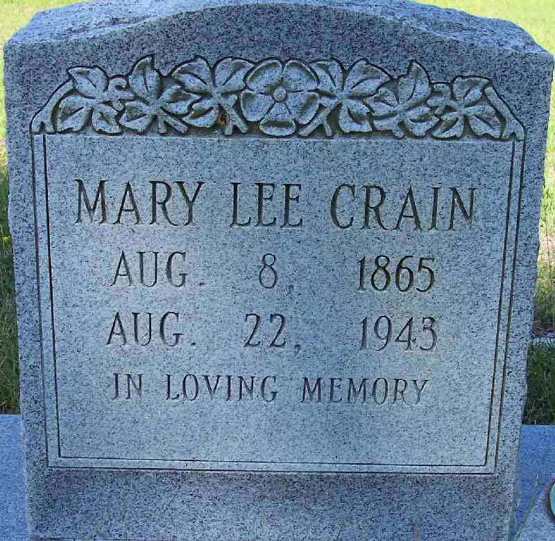 | Crain, Mary Lee | Aug. 8, 1865 | Aug. 22, 1943 | [Double with: Appolos Crain] - [close-up] |