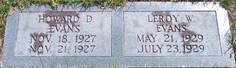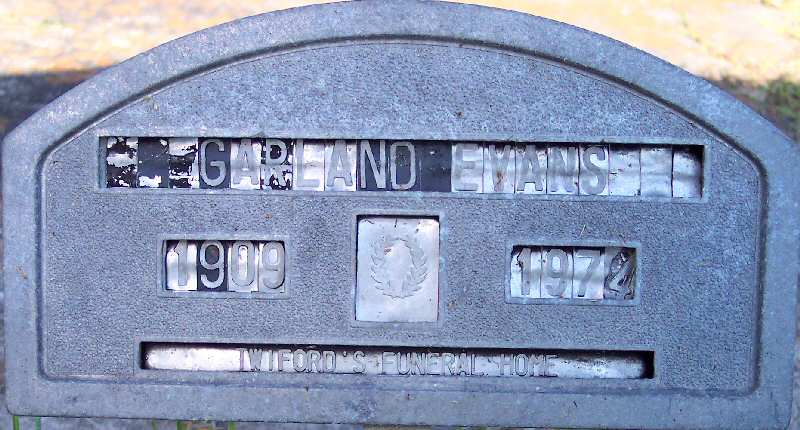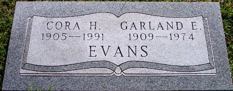 | Evans, Garland E. | [Oct. 31] 1909 | [July 30] 1974 | [Double with: Cora H. Evans] [Funeral Home Marker] [Death Certificate] |