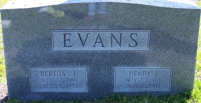 | Evans, Henry J. | Nov. 8, 1878 | Dec. 30, 1953 | [Double with: Bertha J. Evans] |