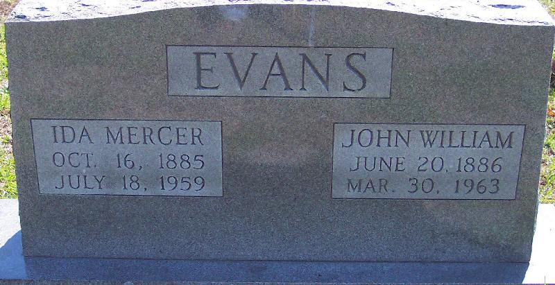 | Evans, Ida Mercer | Oct. 16, 1885 | July 18, 1959 | [Double with: John William Evans] |
