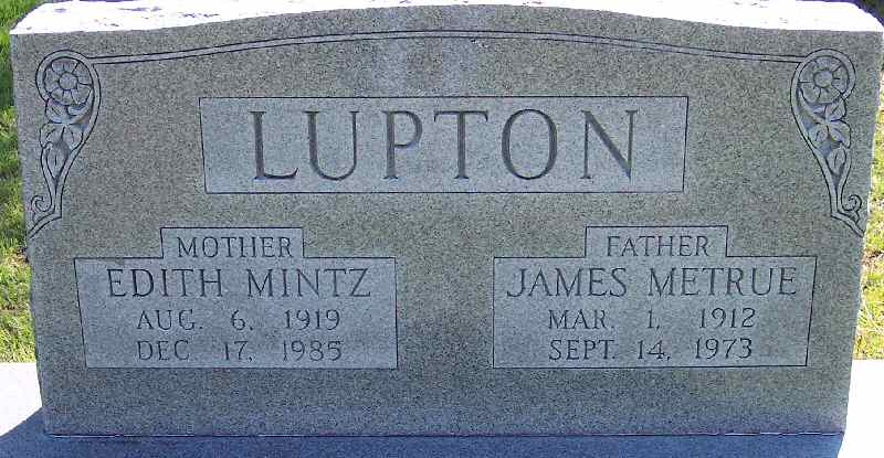 | Lupton, Edith Mintz | Aug. 6, 1919 | Dec. 17, 1985 | [Double with: James Metrue Lupton] Mother |