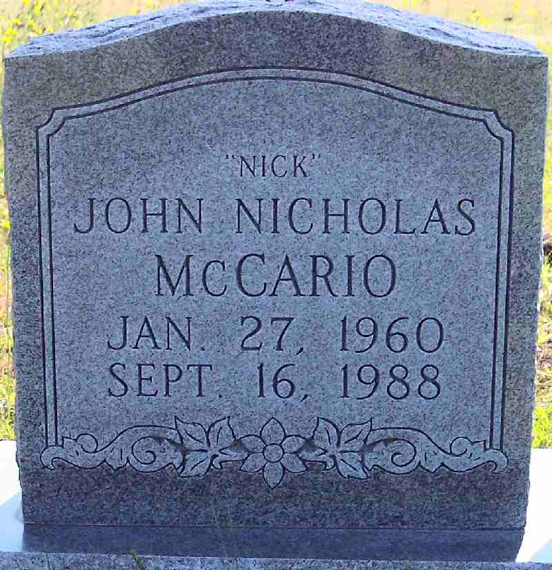 | McCario, John Nicholas "Nick" | Jan. 27, 1960 | Sep. 16, 1988 | |