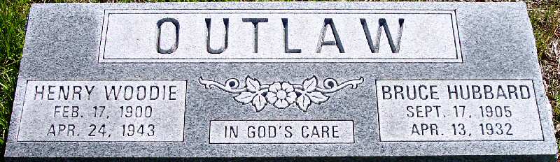 | Outlaw, Henry Woodie | Feb. 17, 1900 | Apr. 24, 1943 | [Double with: Bruce Hubbard Outlaw] |