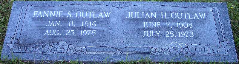 | Outlaw, Fannie S. | Jan. 11, 1916 | Aug. 25, 1975 | [Double with: Julian H. Outlaw] Mother |
