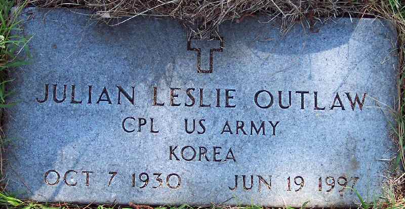 | Outlaw, Julian Leslie | Oct. 7, 1930 | June 19, 1997 | CPL US Army Korea [Funeral Home Marker] |