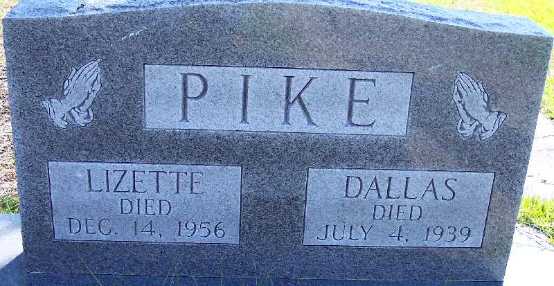 | Pike, Lizette | [Apr. 14, 1879] | Dec. 14, 1956 | [Double with: Dallas Pike] - [Death Certificate] |