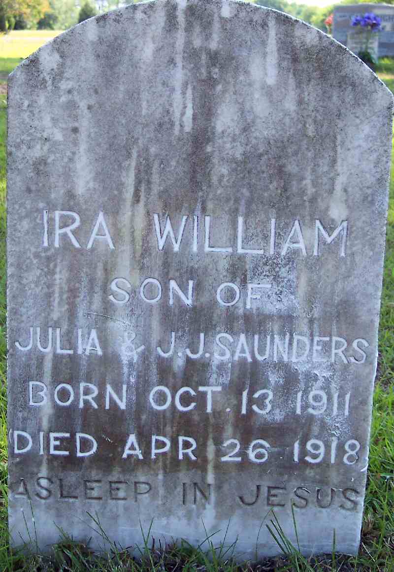 | Saunders, Ira William | Oct. 13, 1911 | Apr. 26, 1918 | Son of Julia & J.J. Saunders |